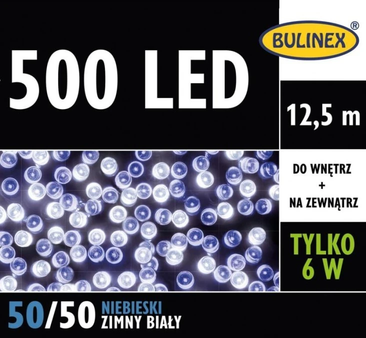 7. Lampki choinkowe zewnętrzne 500 LED lampki z zasilaczem MIX biały zimny/niebieski 12,5m dł. + 3m 230V/31V 6W IP44 13-450 173.76