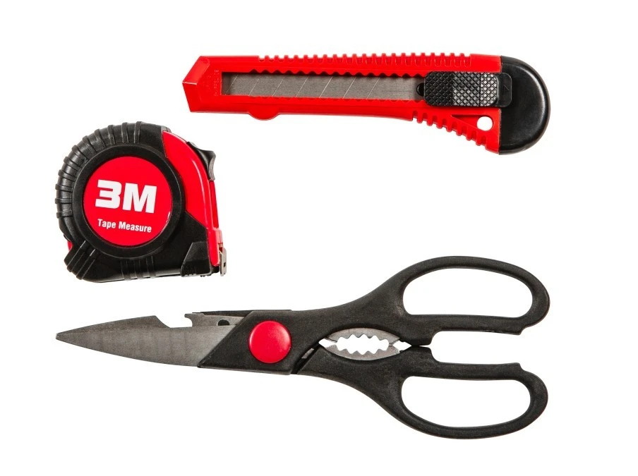 Zestaw narzędzi 3 elementy ( nóż,miara,nożyczki) 17B532