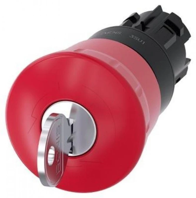 Przycisk bezpieczeństwa 22mm z zamkiem Ronis nr 455 tworzywo czerwony 40mm 2 klucze IP69k SIRIUS ACT 3SU1000-1HF20-0AA0