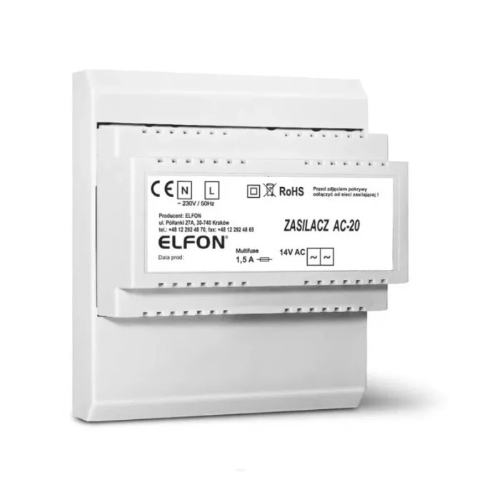 AC20 Zasilacz do paneli domofonowych, modułów Elfon OPTIMA