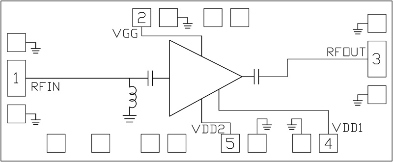 9. Aerospace, GaAs, PHEMT, MMIC, Medium Power Amplifier, 5 GHz to 20 GHz (Die), 5 GHz to 18 GHz (LH5 Pkg). Sample