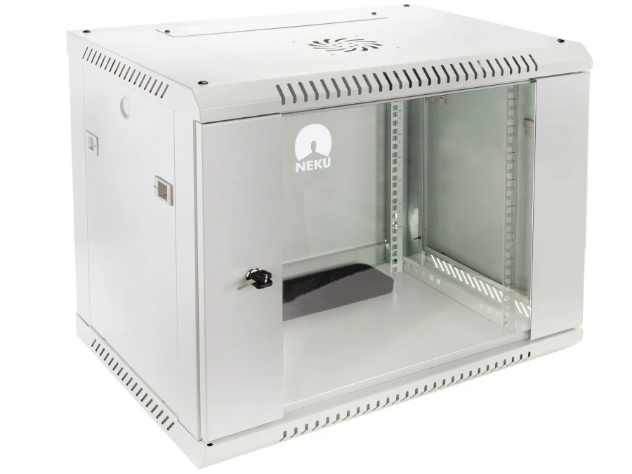 Szafa wisząca RACK 19" 6U 450mm drzwi szklane szara NEKU TS BOX