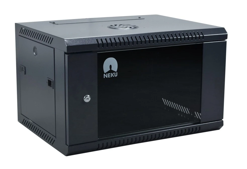 Szafa wisząca RACK 19" 6U 450mm drzwi szklane czarna NEKU TS BOX