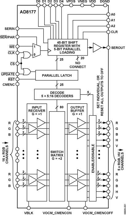450 MH, Triple 16 × 5 Video Crosspoint Switch