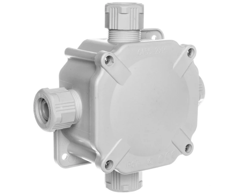 10. Puszka hermetyczna natynkowa 122x122x44,6mm IP67 4xPG27 szara 6455-27P 41.50