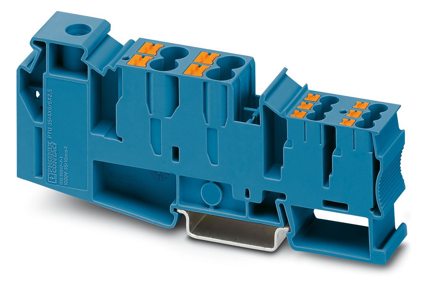 6. Kostka zaciskowa na szynie DIN Phoenix Contact 16 → 1/0AWGWciskane PTU 35/4X6/6X2.5 BU 105A 100 V 2082.51