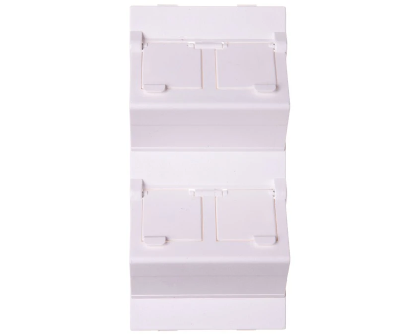 14. Simon Connect Płytka K45 gniazda teleinformatycznego poczwórnego 4xRJ skośna z przesłoną czysta biel S80C/9 41.39