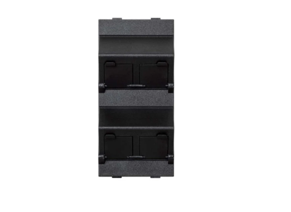13. Simon Connect Płytka K45 gniazda teleinformatycznego poczwórnego 4xRJ skośna z przesłoną szary grafit S80C/14 41.39