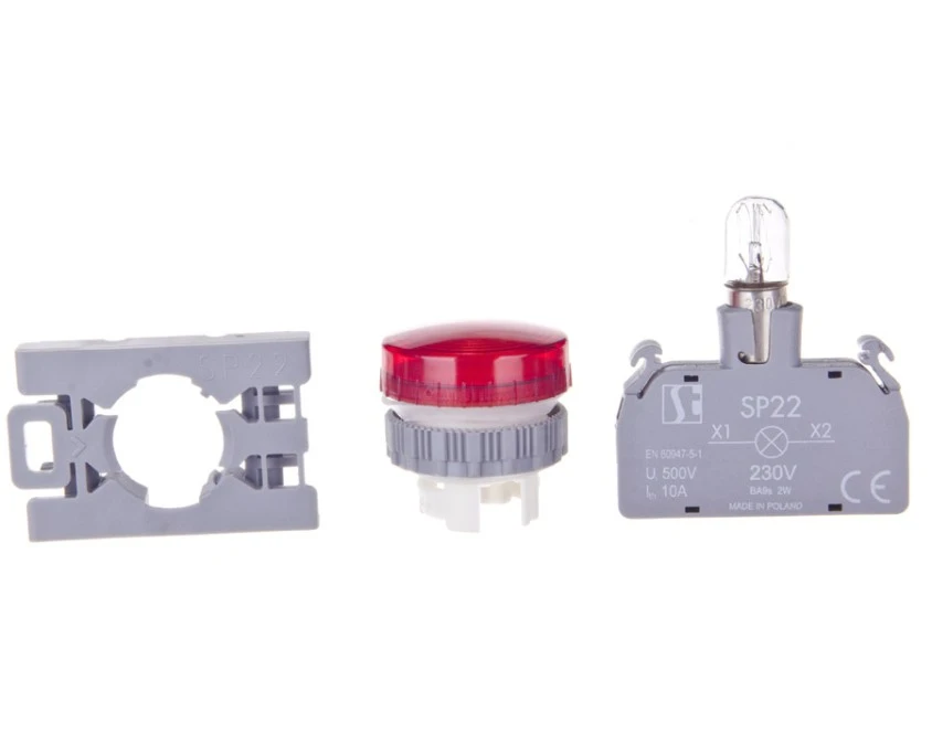 Lampka sygnalizacyjna 22mm czerwona 230V AC SP22-LC-230-BA9S.