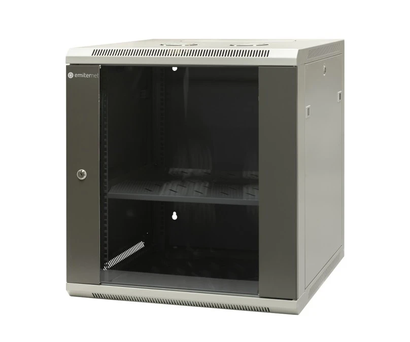17. Szafa wisząca niedzielona 19 12U, drzwi blacha/szkło, ściągane osłony boczne z zamkiem, 600×600×635 szer./gł./wys. mm RAL: sza 512.77