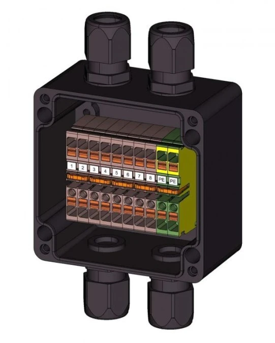 9. Puszka odgałęźna ATEX do stref 2 i 22 IP66 130x180x77mm czarna 5x10 mm² Cu KX 1010 C 479.39