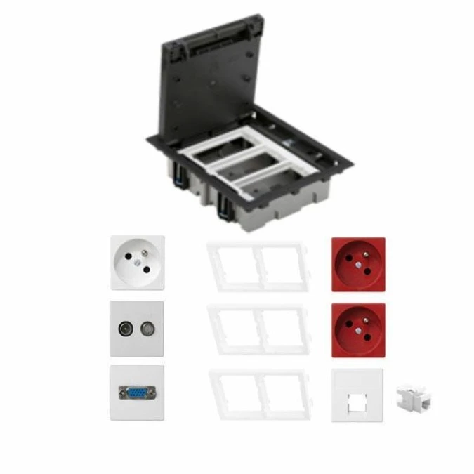 KONTAKT SIMON FLOOR BOX puszka podłogowa 1x gniazdo z/u + 2x DATA + 1x gniazdo RJ45 kat. 6 + 1x VGA + 1x RTV-SAT do podłóg techn
