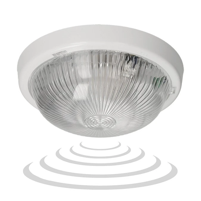 7070T-ALFA/MS, oprawa oświetleniowa z mikrofalowym czujnikiem ruchu, 100W, E27, IP44, szkło przeźroczyste,A2210-HF