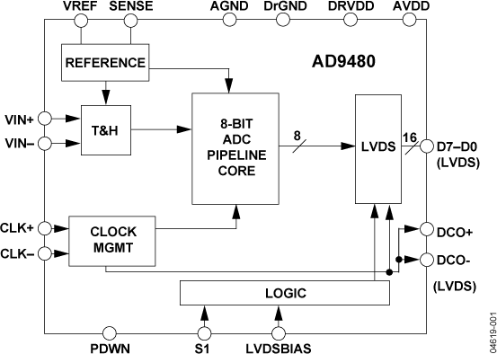 8-Bit, 250 MSPS, 3.3 V A/D Converter