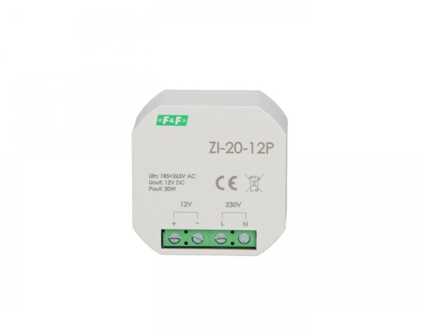 Zasilacz impulsowy do puszki 180-264V AC, wyj. 12V DC 1,6A 20W ZI-20-12P