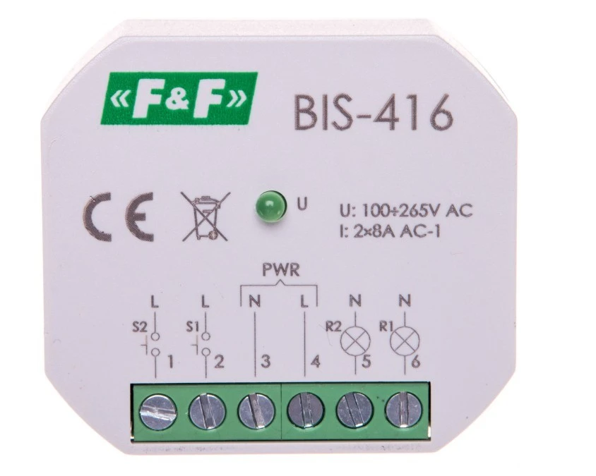 6. Przekaźnik impulsowy dwukanałowy 8A 2Z 230V AC BIS-416 113.63