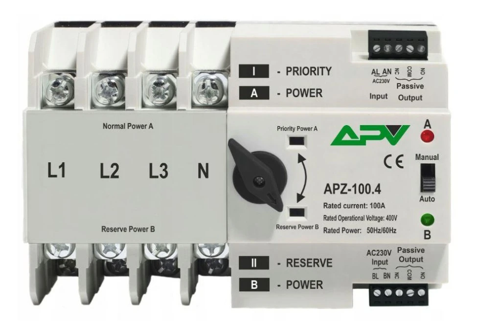 Automatyczny Sieciowy Przełącznik Zasilania 4P 100A 3F PV 400V 3P+N