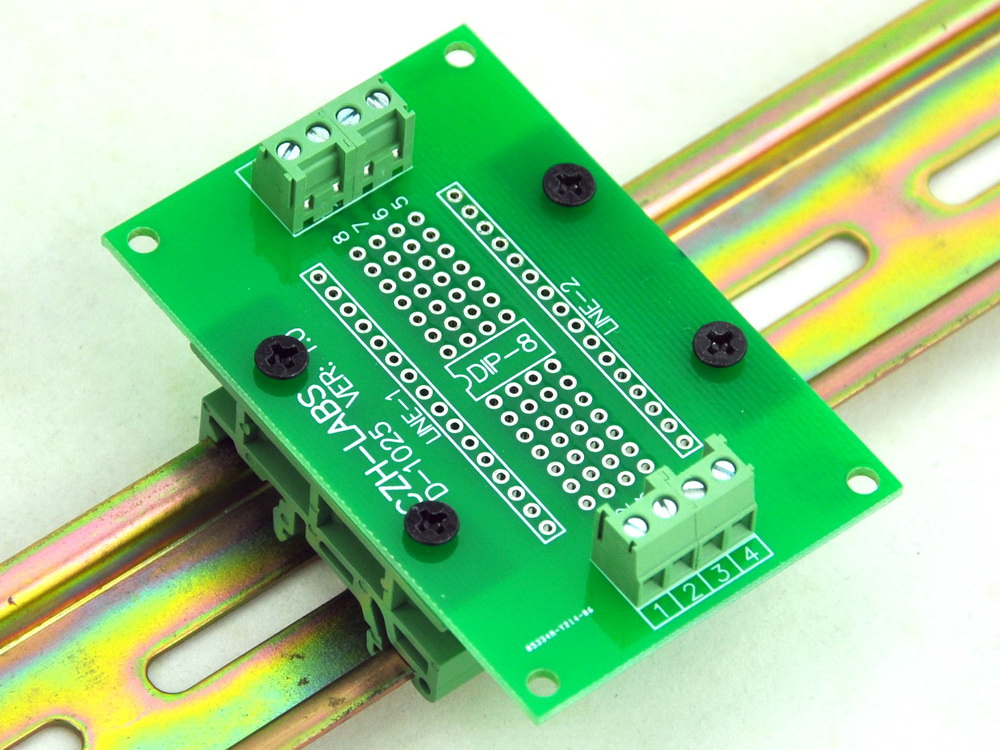 DIP-8 Component to Screw Terminal Adapter PCB, w/Simple DIN Rail Mount Bracket.