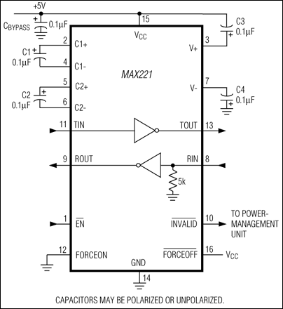 The MAX221 is a +5V-powered, single transmit/ ...
