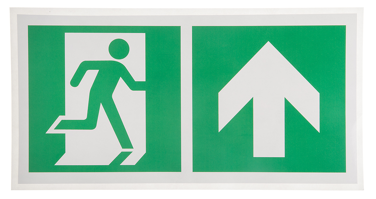 Znak ewakuacyjny niepodświetlany, Winyl, Zielony/biały, Brak, Opis: Wyjście ewakuacyjne do góry