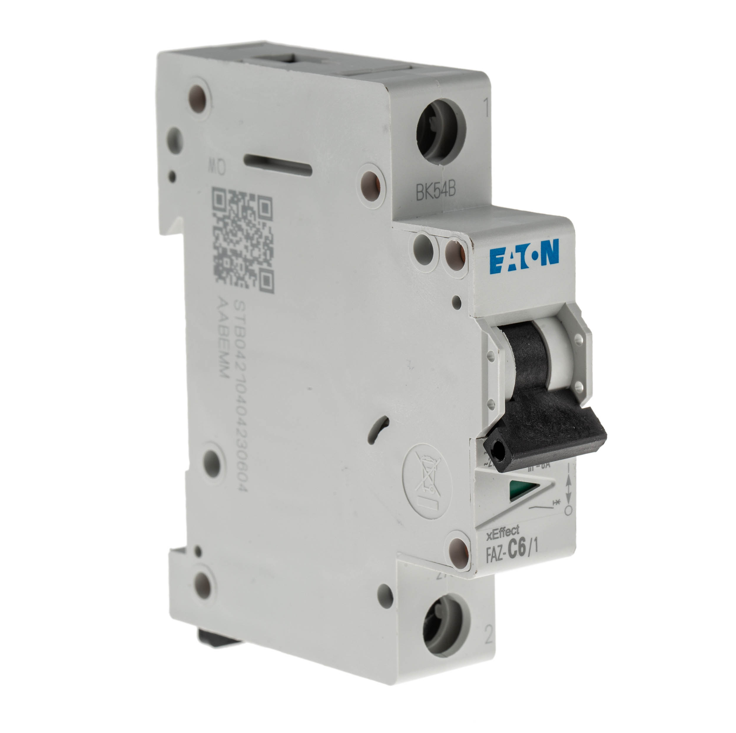 Wyłącznik nadprądowy MCB, Typ C, 1-biegunowy, 6A, 230V, 60V, na szynę DIN, Eaton