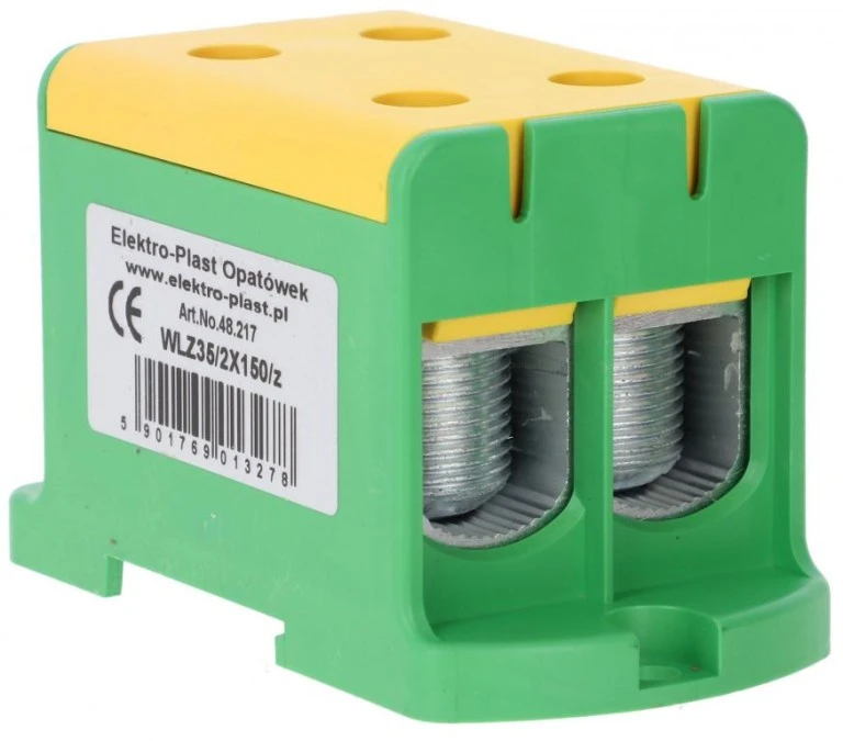 Blok rozdzielczy-odgałęźny 2x1-biegun AL/CU 35-150mm2 żółto-zielony montaż płaski i na szynę TH WLZ35/2x150/z 48.217