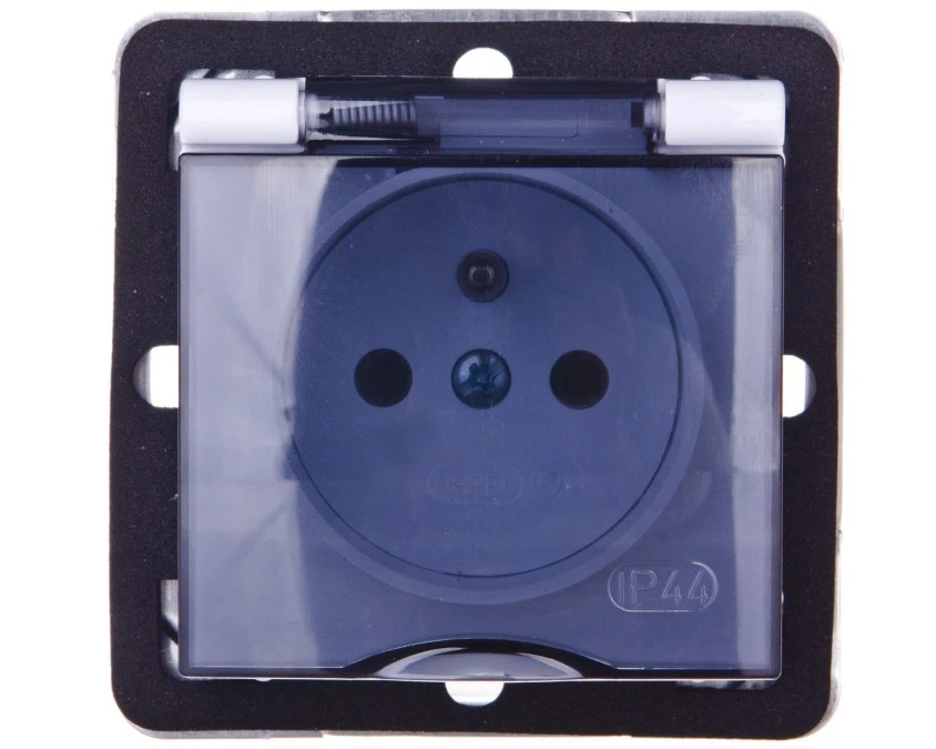 13. IMPRESJA Gniazdo bryzgoszczelne z/u IP44 klapka przezroczysta białe GPH-1YZ/m/00/d 27.55