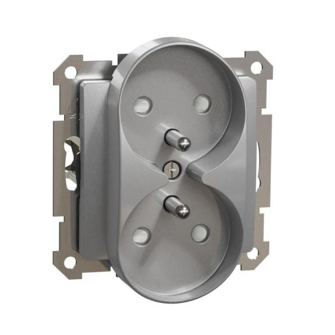 Gniazdo 2x2P+PE przesł do syst ramkowego (do ramek Sedna Elements), srebrne alum, Sedna Elements SDD113271