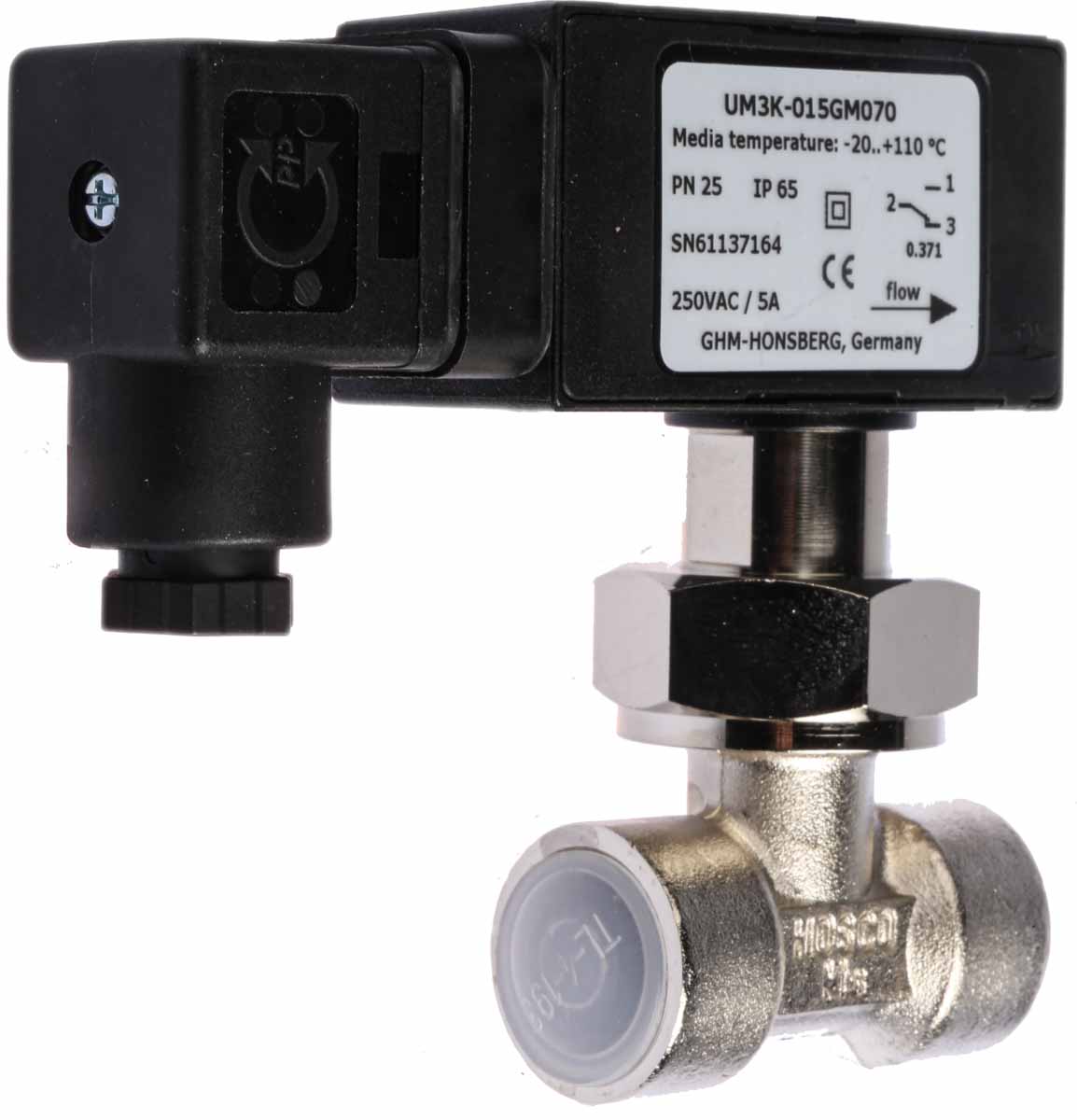 Wyłącznik przepływowy do płynów i gazów 5.5 L/min → 7 L/min Pokrętło 1/2 BSP żeńskie 15 mm