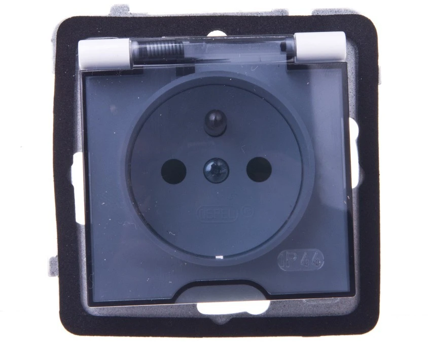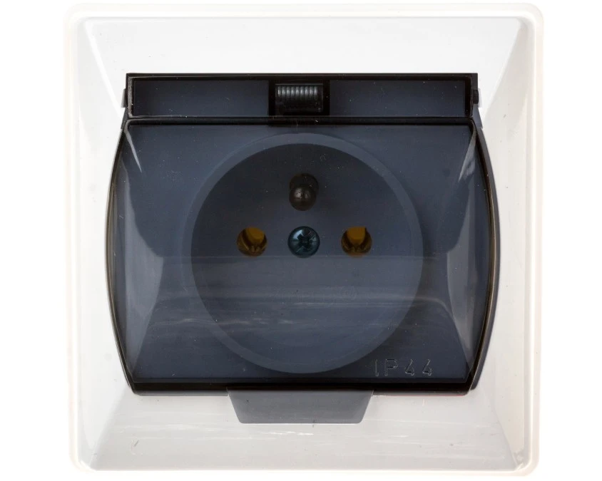 4. AS Gniazdo bryzgoszczelne z/u IP44 z przesłonami klapka przezroczysta białe GPH-1GZP/m/00/d 22.63