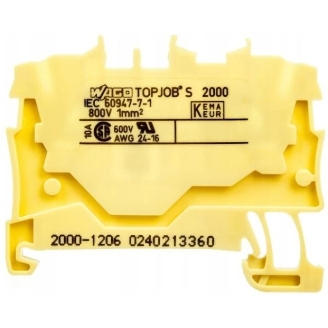 10. WAGO TOPJOBS 2000-1206 Złączka szynowa 2-przewodowa 1,0mm2 na szynę TH35 żółta 4.46