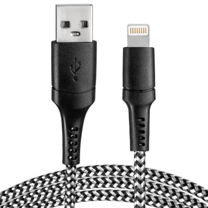 Kabel USB - lightning oplot czarno-biały 1m VA0149 ...