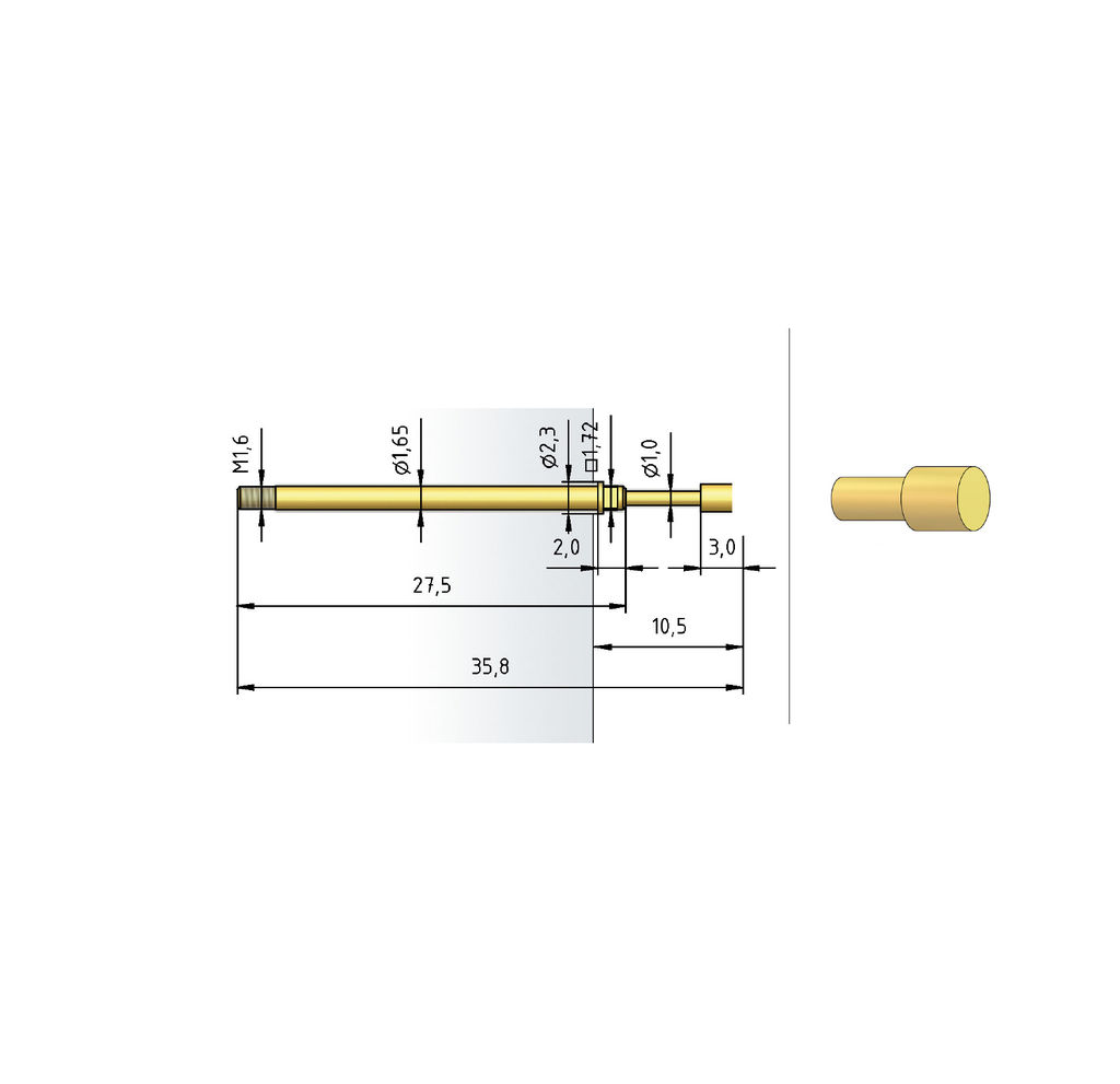 Igła testowa 1021/G-F0035-3.0N-AU-1.0X3.5/1.8, raster 2,54 (100 mil)