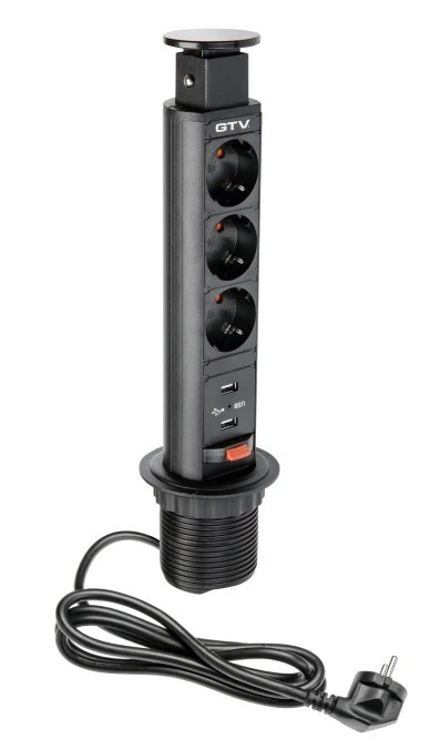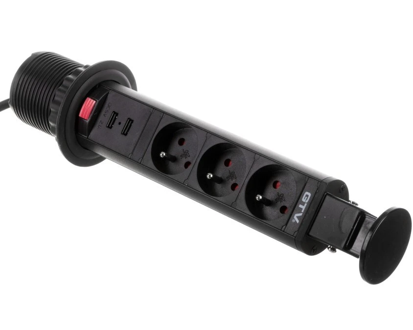 BIURKOWY PRZEDŁUŻACZ WPUSZCZANY 60mm 3X schuko 2XUSB 2,1A 5V (CZARNY)