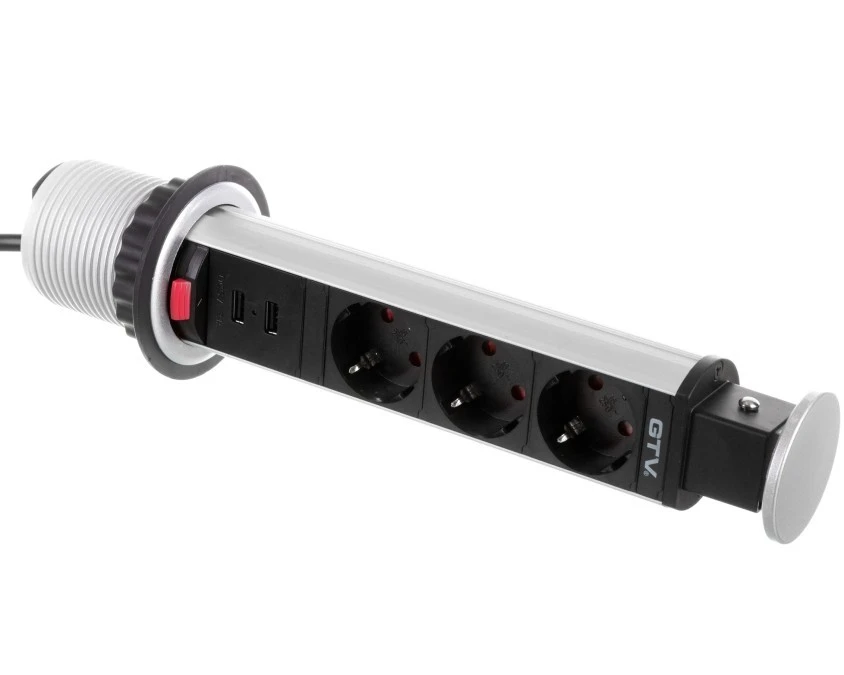 BIURKOWY PRZEDŁUŻACZ WPUSZCZANY 60mm 3X schuko 2XUSB 2,1A 5V (SREBRNY)