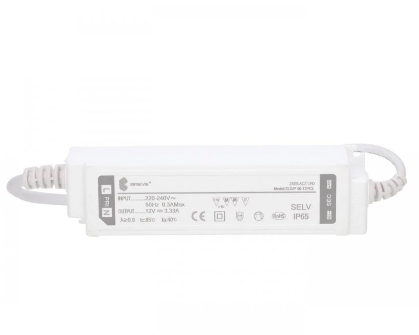 Zasilacz LED 12V DC 40W 3,33A IP65 /z zabezpieczeniami/ ZLDP 40-12YCL 19712-9038