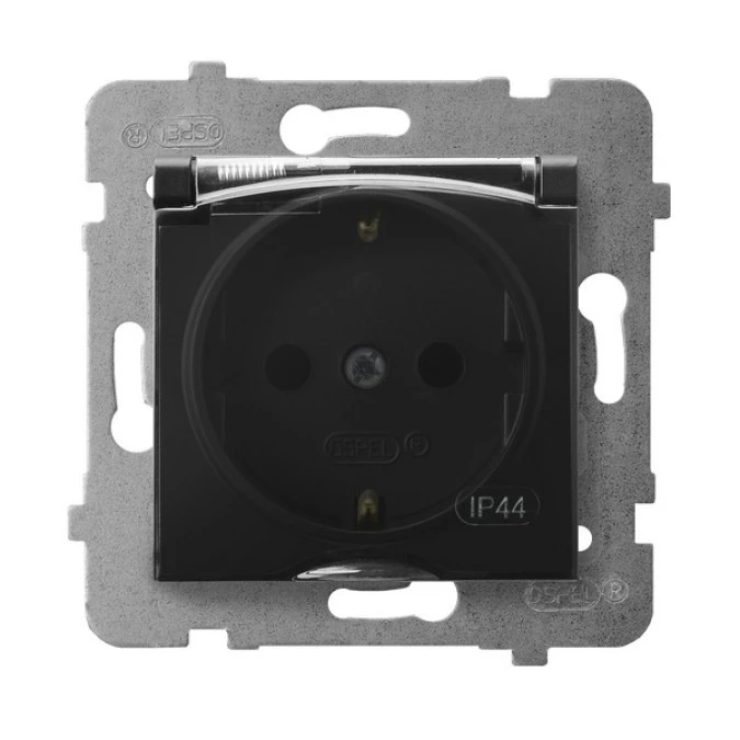 SONATA Gniazdo pojedyncze z uziemieniem IP44 z klapką czarny metalik GPH-1RZ/m/33/d OSPEL