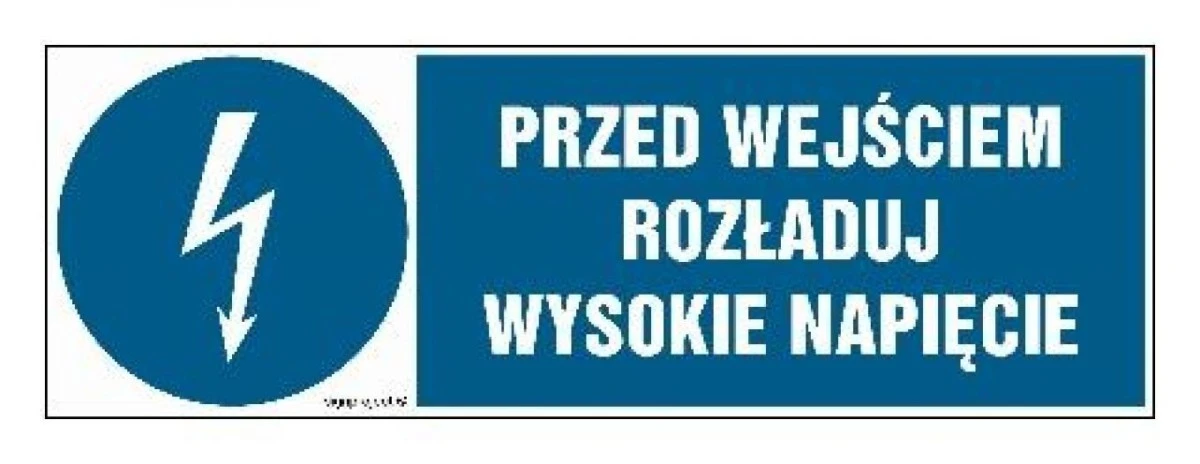 ZNAK - HF007 Przed wejściem rozładuj wysokie napięcie 15 x 5 cm FN - Folia samoprzylepna