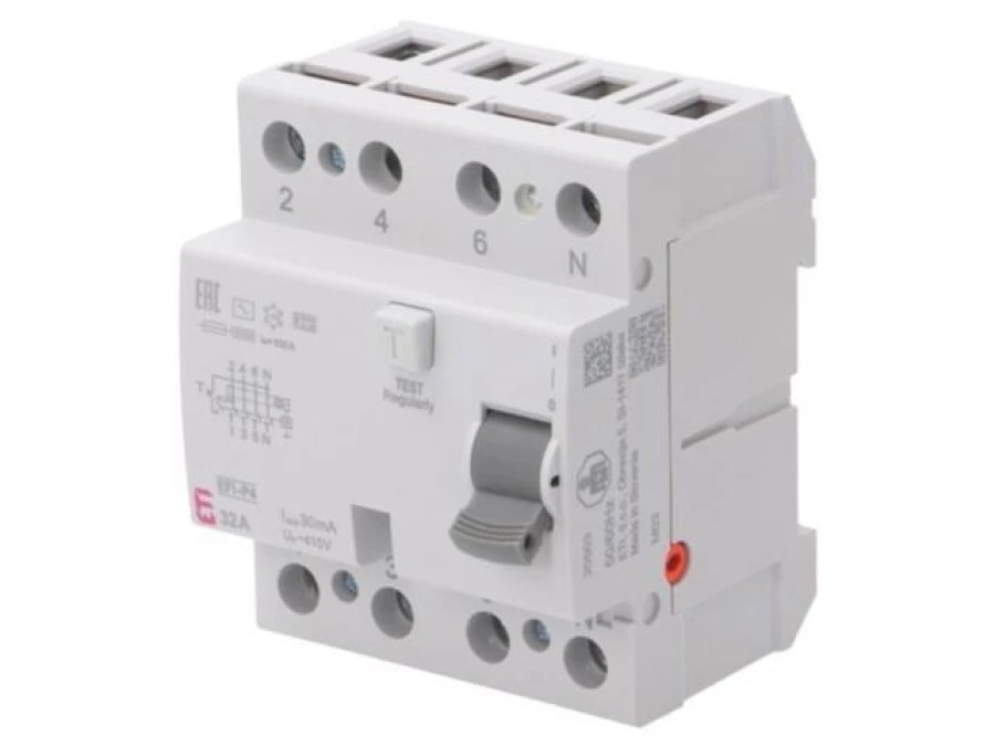 3. Wyłącznik różnicowy, Prąd znamionowy: 32A, Iróżn: 30mA, Bieguny: 4, 230V,400V EFI-P4 AC 32/0.03 391.39
