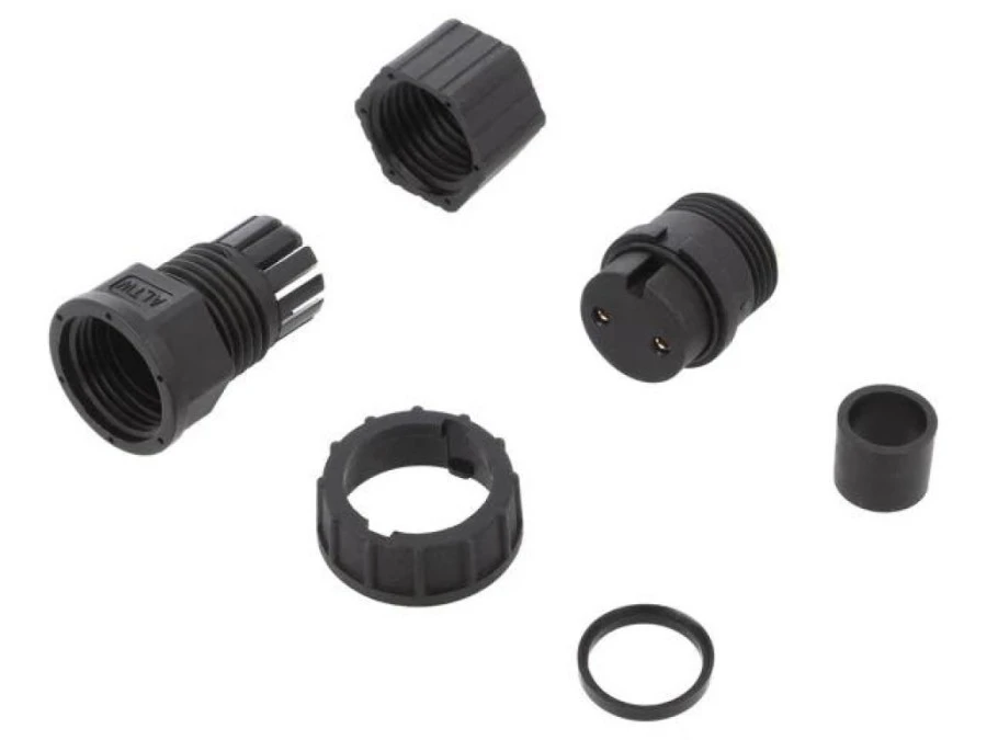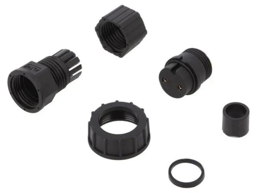 DC-02BFFB-LL7001 Złącze okrągłe wtyk rozmiar D żeński 2PIN złocony 20A IP67
