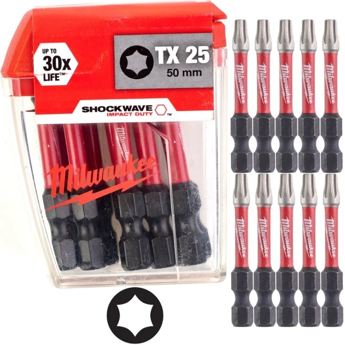 Bity udarowe do wkrętarki TORX TX25 50mm 1/4 SHOCKWAVE 10szt MILWAUKEE