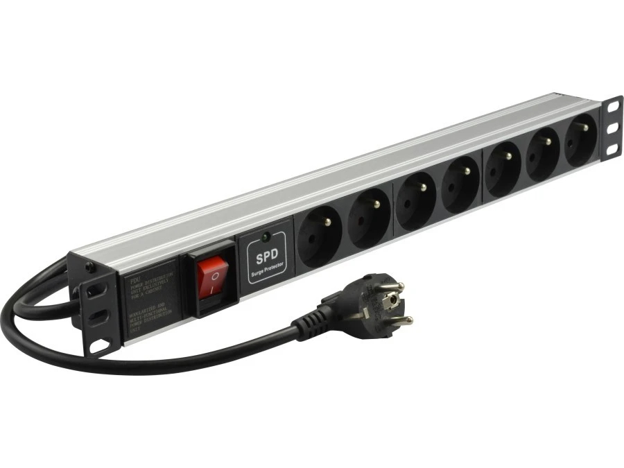 Listwa zasilająca antyprzepięciowa RACK 19 cali 1U 7 gniazd z wyłącznikiem NEKU /1,8m/
