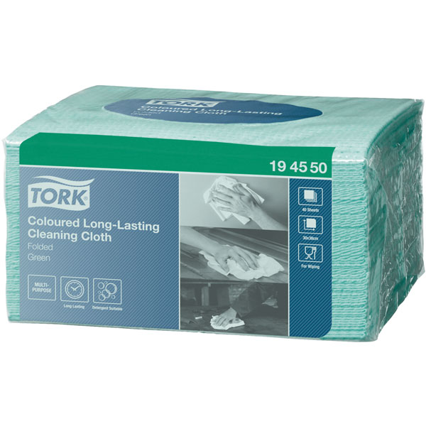 Tork 194550 Coloured Long Lasting Cleaning Cloth - Green - 8 Bags Of 40 Wipes