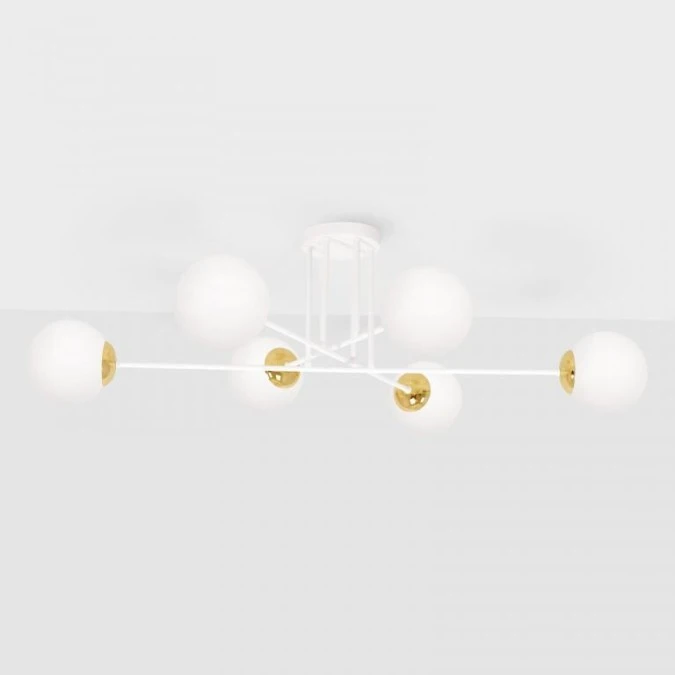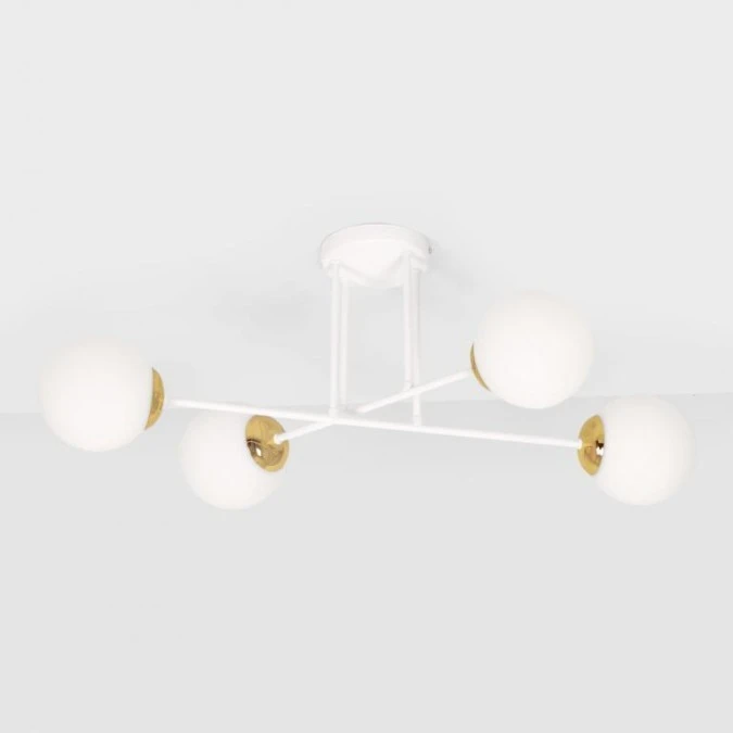 Lampa sufitowa ELMO biała szklane klosze, złote dodatki K-5314 Kaja Lighting