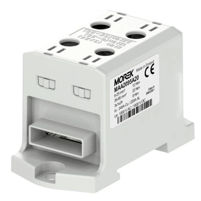 7. Złączka OTL95-2B szary 2xAl/Cu 6-95mm2 3x1x24 1000V AC / 1500V DC Zacisk uniwersalny z wejściem na szynę elastyczną MAA2095A20 140.48