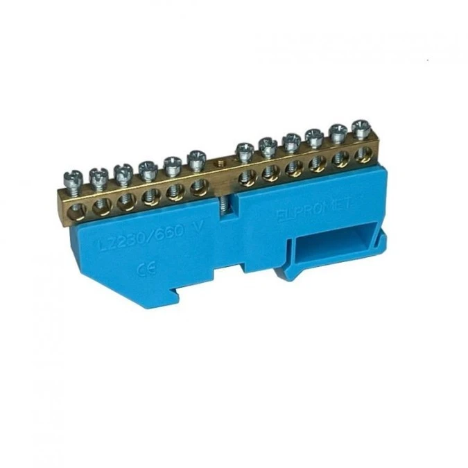 14. Listwa zerowa zaciskowa mocowana na szynę LZ12 niebieska 12‑torowa 5.23