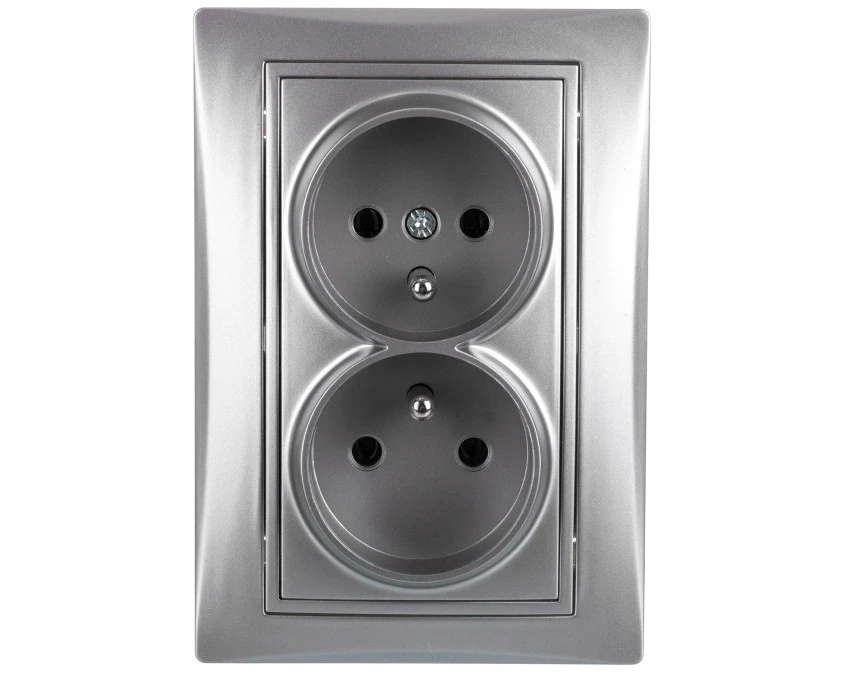 Domo Gniazdo Podwójne Kompletne Śrubowe 16A 250V Srebrny 011261143 24857
