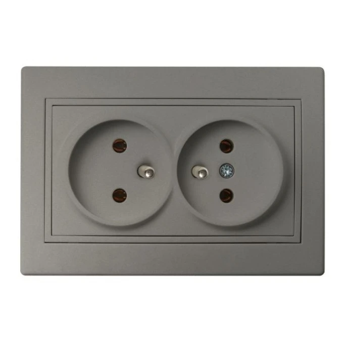 DOMO Gniazdo podwójne z uziemieniem śrubowe 16A 250V grafit 011253141 24914