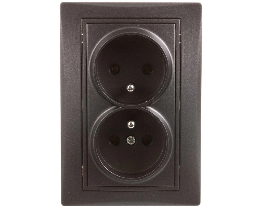 DOMO Gniazdo podwójne kompletne śrubowe 16A 250V grafit 011261141 24916