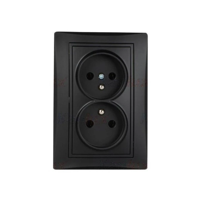 DOMO Gniazdo zasilające podwójne francuskie kompletne 16A 250V 011261242 czarny mat 36485